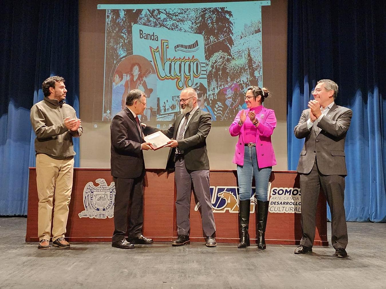 ZACATECAS, ZAC.- La Universidad Autónoma de Zacatecas (UAZ), a través del Área de Arte y Cultura, la Unidad Académica de Artes y el Programa Transversal de Extensión, Creación y Difusión Artística, llevó a cabo una ceremonia de homenaje por sus 41 años de trayectoria universitaria y 50 años de destacada experiencia en el ámbito musical a Ignacio Rosales Encina.