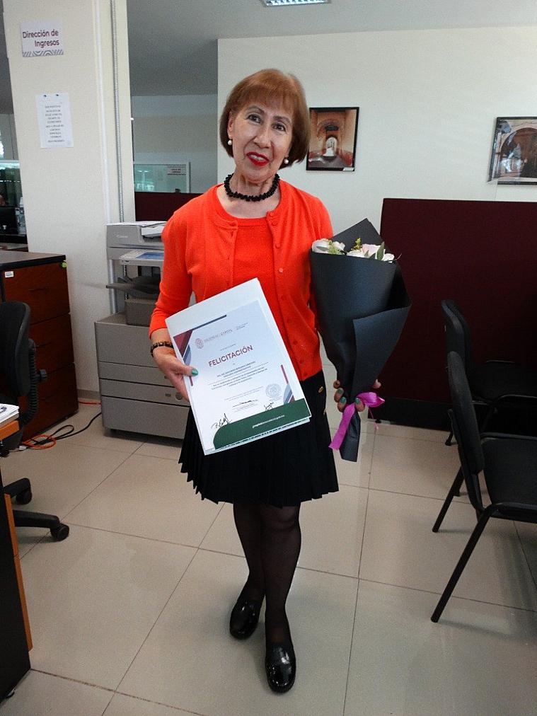 Luego de que compañeros de trabajo se unieran también a las felicitaciones, Ma. Del Socorro Berumen Sánchez expresó su agradecimiento y los invitó a trabajar en equipo, para atender de manera cortés a la ciudadanía.