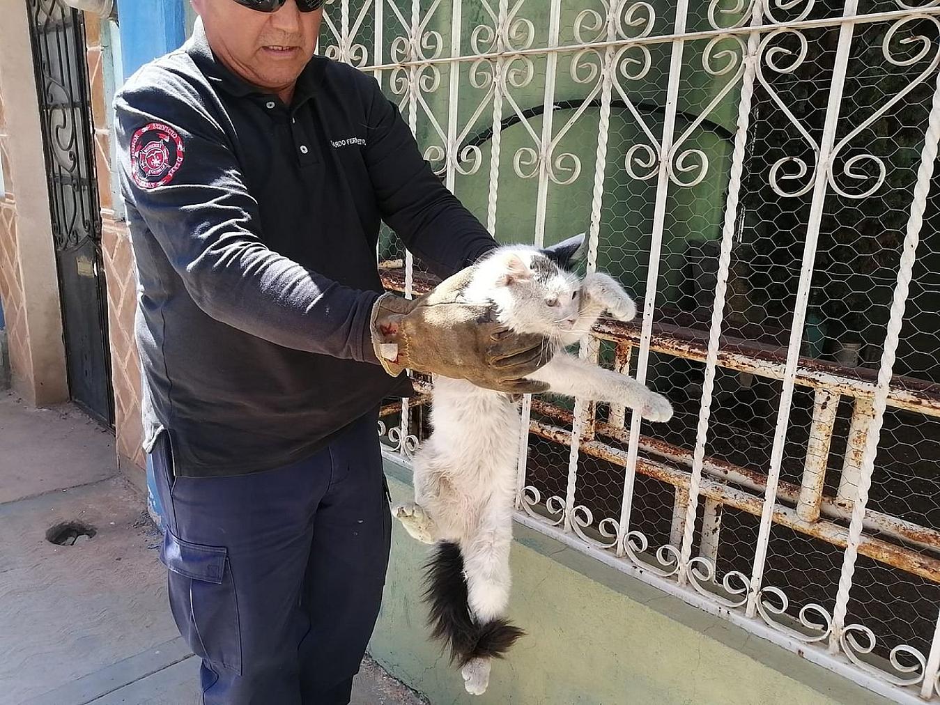 FRESNILLO, ZAC.- Elementos del departamento de Protección Civil y Bomberos del municipio, atendieron un reporte que se hizo al Sistema de Emergencias 911 sobre un gato atorado en la ventana de una casa de la colonia Esparza.