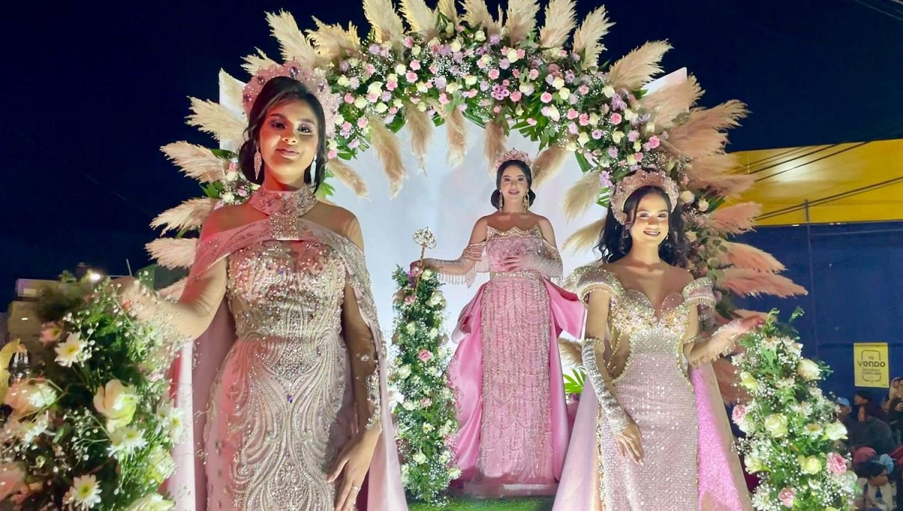 Al final, el carro alegórico de la reina Tania I y su corte real conformada por Estefanía y Vannia, así como de la participación del rey Oliver Aranda, que amenizaban su paso por la banda La Bendición.