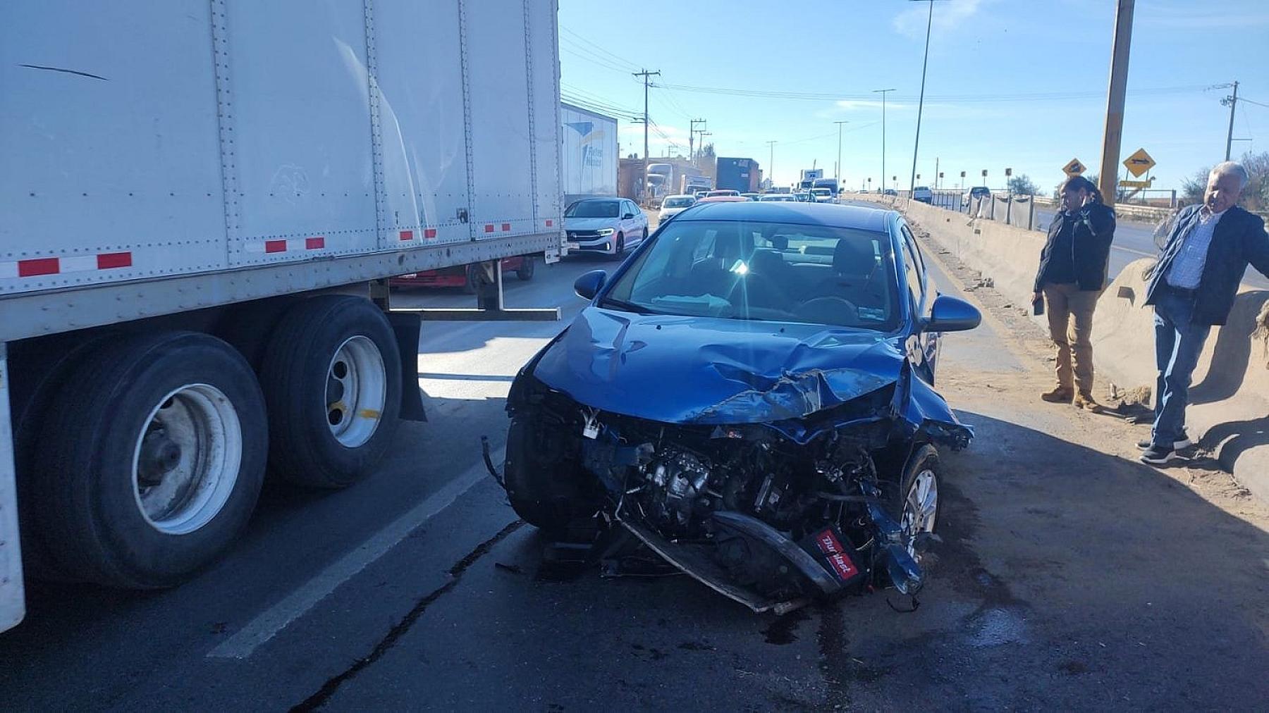 El vehículo siniestrado fue un Chevrolet, Sonic, color azul que quedó con el frente destrozado luego de golpear la barrera de contención.