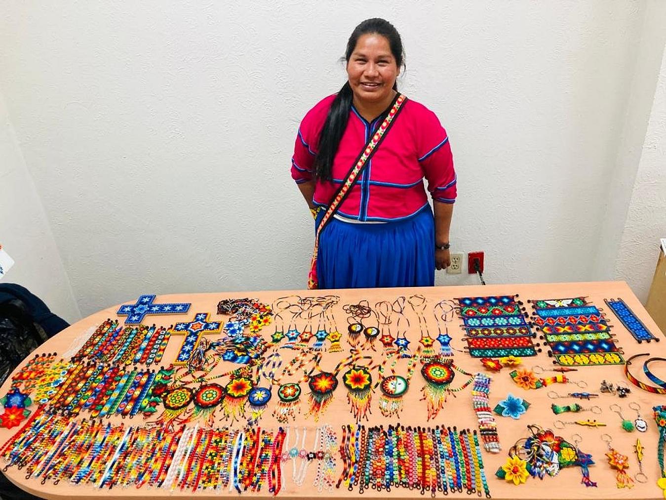 ZACATECAS, ZAC.- La vida de la wixárica Sikiwivima López Valdez es un ejemplo de trabajo y decisión, ya que hizo crecer su negocio de elaboración y comercialización de artesanías de chaquira para dar estabilidad a su familia.