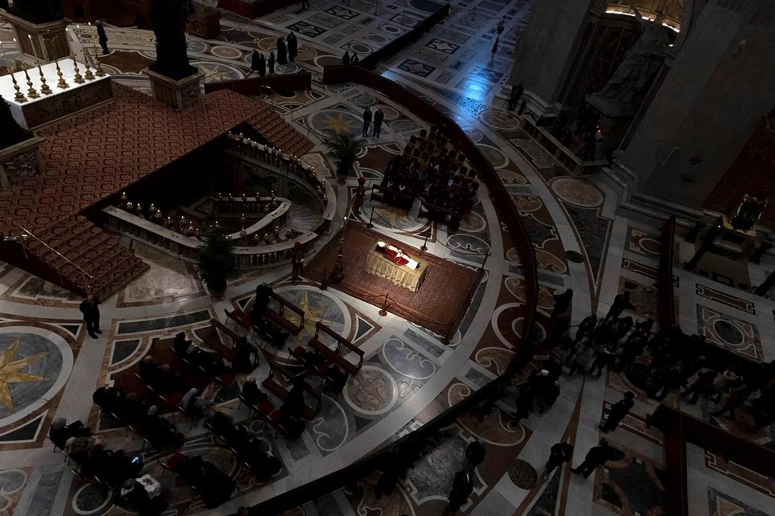 El féretro del pontífice emérito, que reposa ahora en la capilla ardiente dispuesta en la basílica de San Pedro, saldrá del templo el jueves en torno a las 08:50 h locales, unos 40 minutos antes del inicio del funeral, mientras los fieles rezan el rosario.