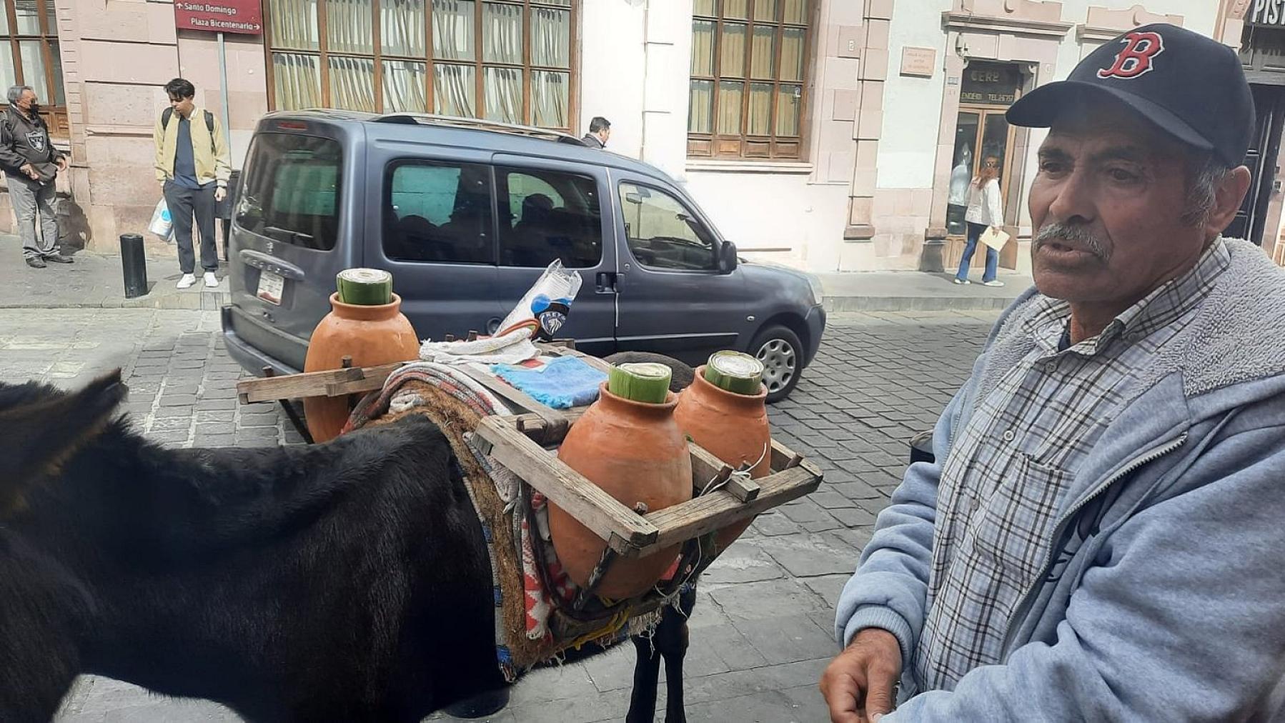 A su burra la deja en la capital, en un lugar que le prestan y de ahí camina al centro, donde ya tiene clientela fija y lo buscan casi a diario, pues es una bebida que, aseguran, es curativa de muchos males o por lo menos equilibra algunas enfermedades crónicas, como la diabetes, con su consumo constante.