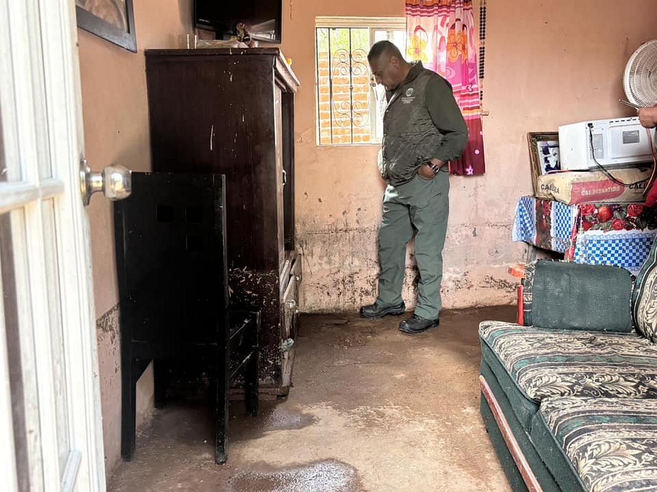 Uno de los domicilios afectados, ubicado en la Privada Hidalgo, sufrió daños significativos en la cocina, recámaras y baño. La fuerte corriente tumbó una barda colindante con un corral, acumulando agua que provocó el derrumbe de la misma y la subsecuente inundación de la casa.