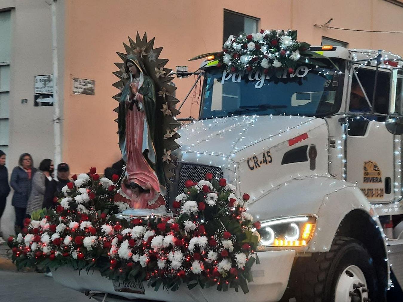 Cientos de personas recorrieron el Jardín Echeverría con antorchas en la mano, mientras que otros participaron en la decoración de carros alegóricos, que portaron la imagen de la Morenita del Tepeyac.